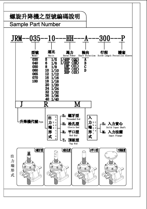 三:台湾成大(CHENTA减速机之螺旋升降机的组成部分如下
